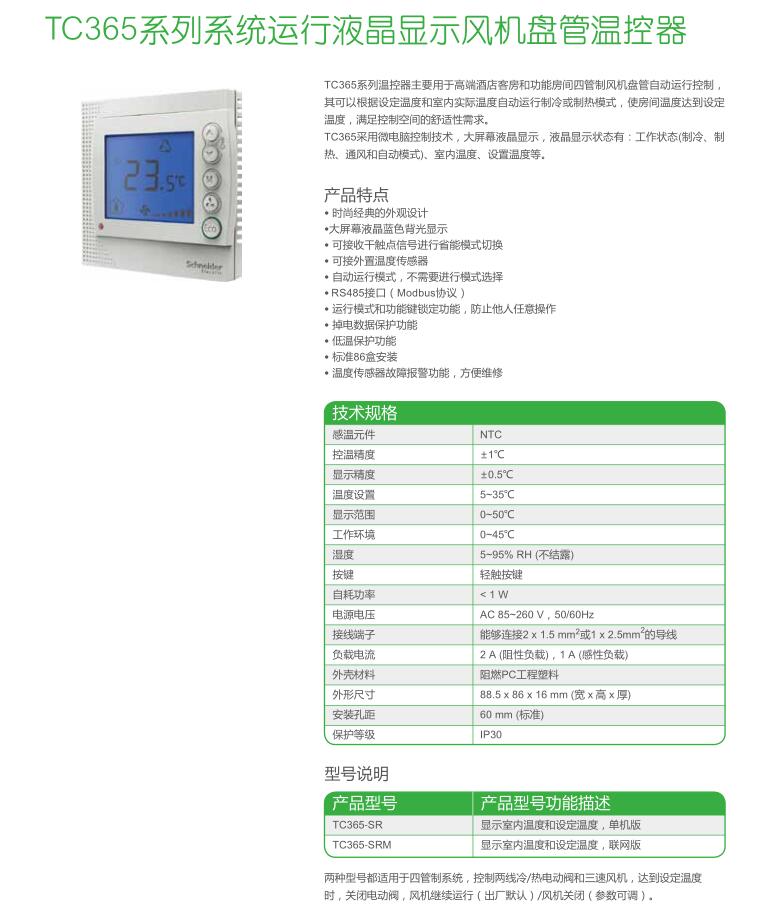 • TC365系列系統(tǒng)運行液晶顯示風機盤管溫控器