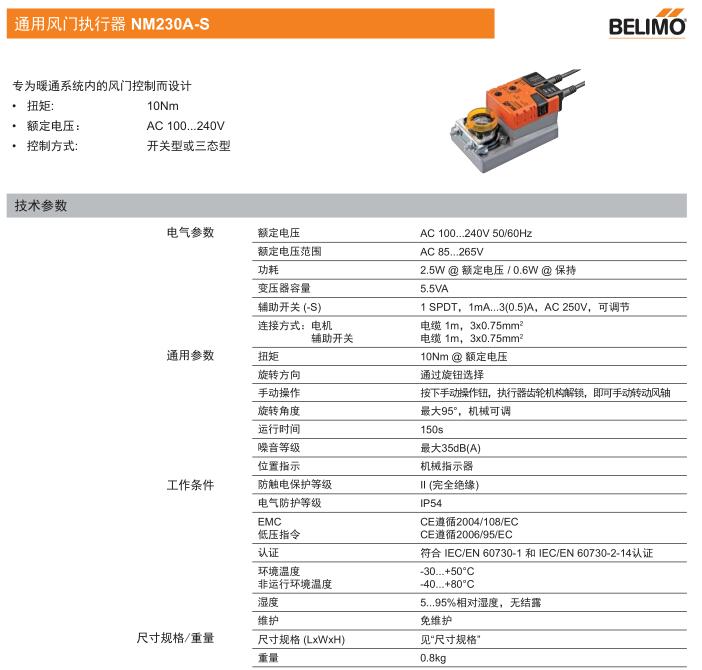 • NM230A通用風(fēng)門(mén)執(zhí)行器